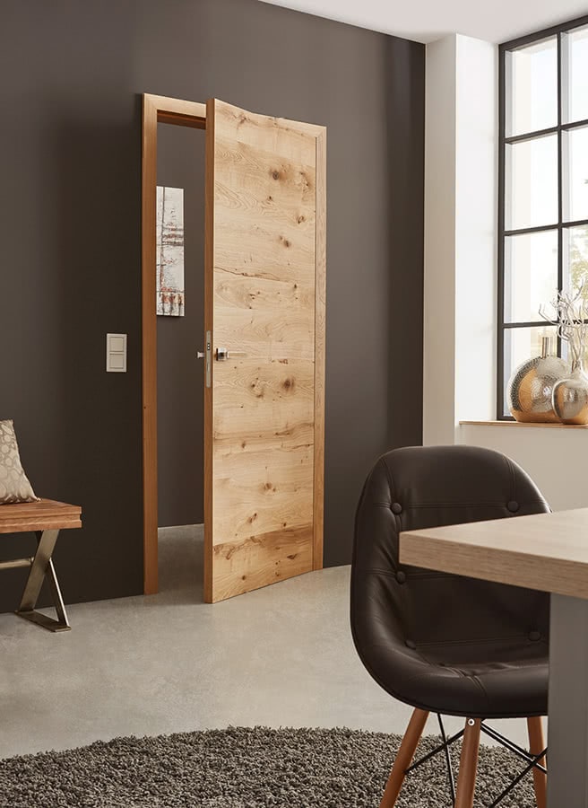 Wer das Rustikale und Außergewöhnliche liebt, der wird sich der Urwüchsigkeit der HGM-Kollektion »FACHWERK« nicht entziehen können. Das einmalige Eichefurnier mit seinen Rissen und Astlöchern, die mit schwarzem Vlies hinterfüttert sind, überzeugt durch seine authentische Ausstrahlung. Die sorgfältig ausgesuchten Farbnuancen Natur, Bronze und Titan unterstreichen den wildwüchsigen Charme und die Einzigartigkeit dieses ausdrucksstarken Eichefurniers, das beim HGM Türblatt sowohl aufrecht, als auch quer verarbeitet wird.