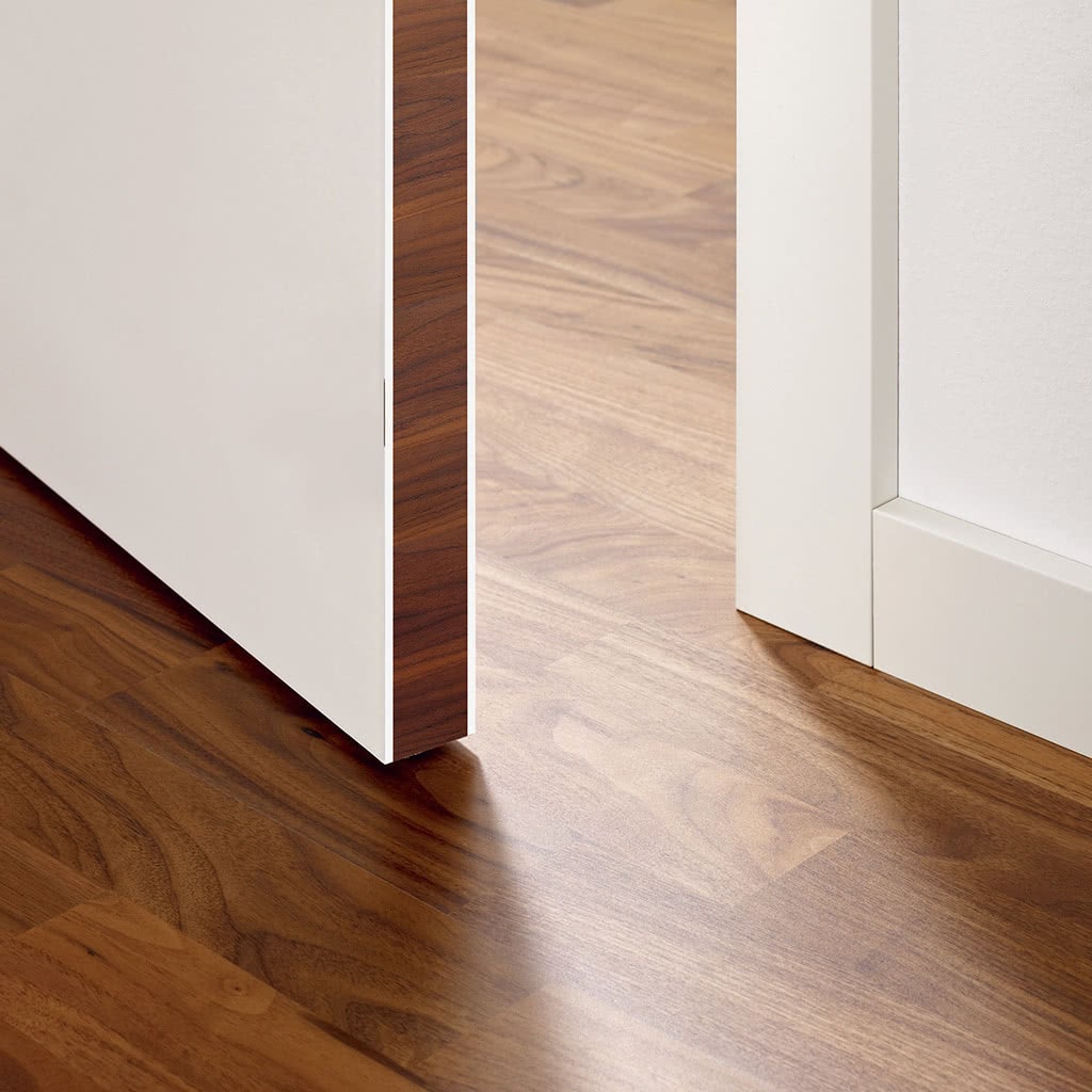 Vielfältige Möglichkeiten in der Türgestaltung bieten die Sandwichkanten. Die Kante kann mit Lack oder Holz gesetzt werden. .