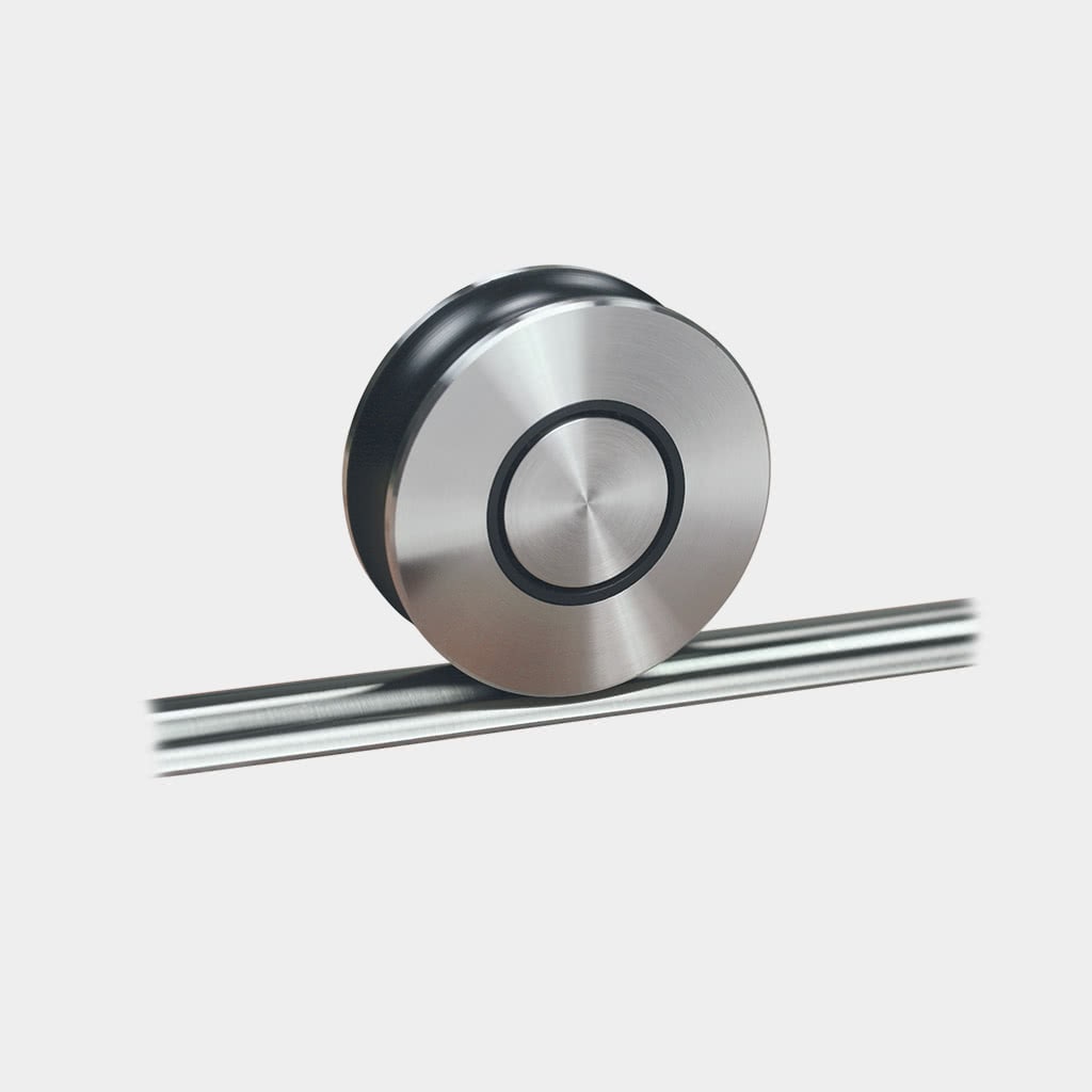 Das am Boden befestigte Schiebetürsystem mit frei sichtbaren Rollen